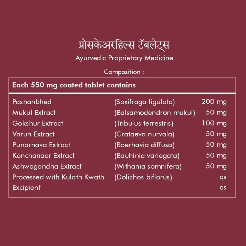 Proscarehills Tablets provide natural support for men’s urinary and prostate health. Formulated with a blend of Ayurvedic herbs such as Pashanbhed, Gokshura, Punarnava, and Ashwagandha, these tablets aim to help maintain healthy urinary flow and kidney function. This herbal formulation supports overall men’s wellbeing and helps maintain balanced prostate health naturally.